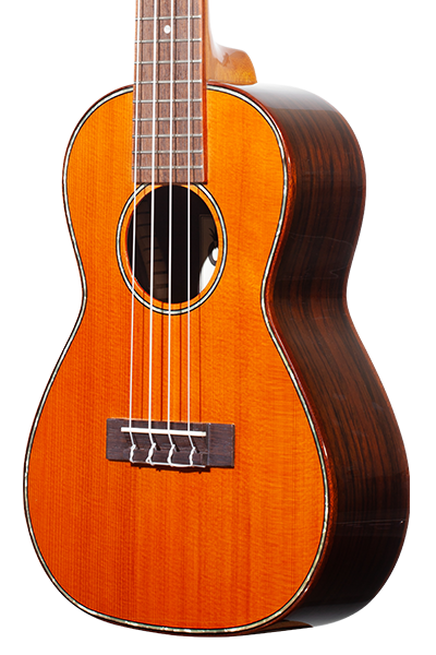 Based on a classic acoustic guitar pairing, the -50G series is a gorgeous example of an all solid pairing in Cedar and Rosewood. The ukuleles in this series have some of the warmest, richest voices in the line and also exhibit excellent sustain. Wood binding hems in pearlescent purfling, all finished in high gloss. A favorite of dealers, artists, and listeners, it is one of the most excellent sounding ukuleles on the market.