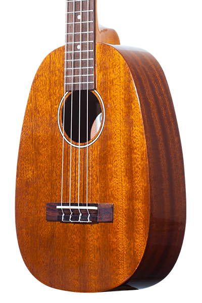 A cheery family in all solid mahogany, the Ohana Pineapple 25G line is charming and sounds like a champ! A high gloss finish makes the grain of the mahogany sparkle and the unique headstock treatment reminds the player of a spiky pineapple top. Now available in Sopranissimo thru Concert scale.